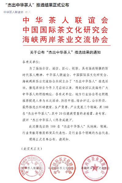 劉三運榮獲“杰出中華茶人”