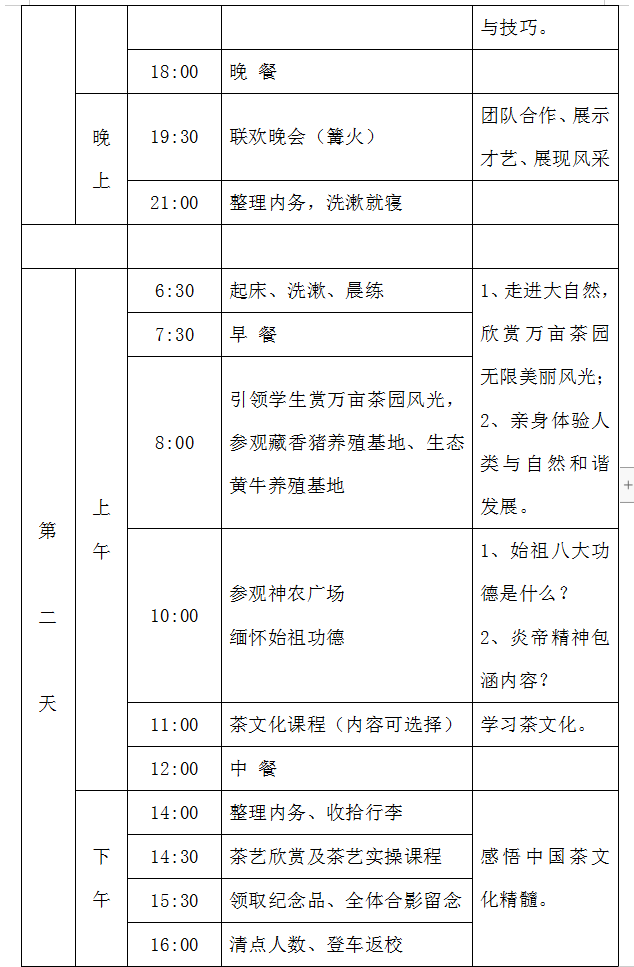 2、學(xué)習(xí)茶文化、農(nóng)耕文化、國(guó)學(xué)禮儀,全面提升學(xué)生個(gè)人文化素養(yǎng),培養(yǎng)高雅的氣質(zhì)和高尚的道德情操;